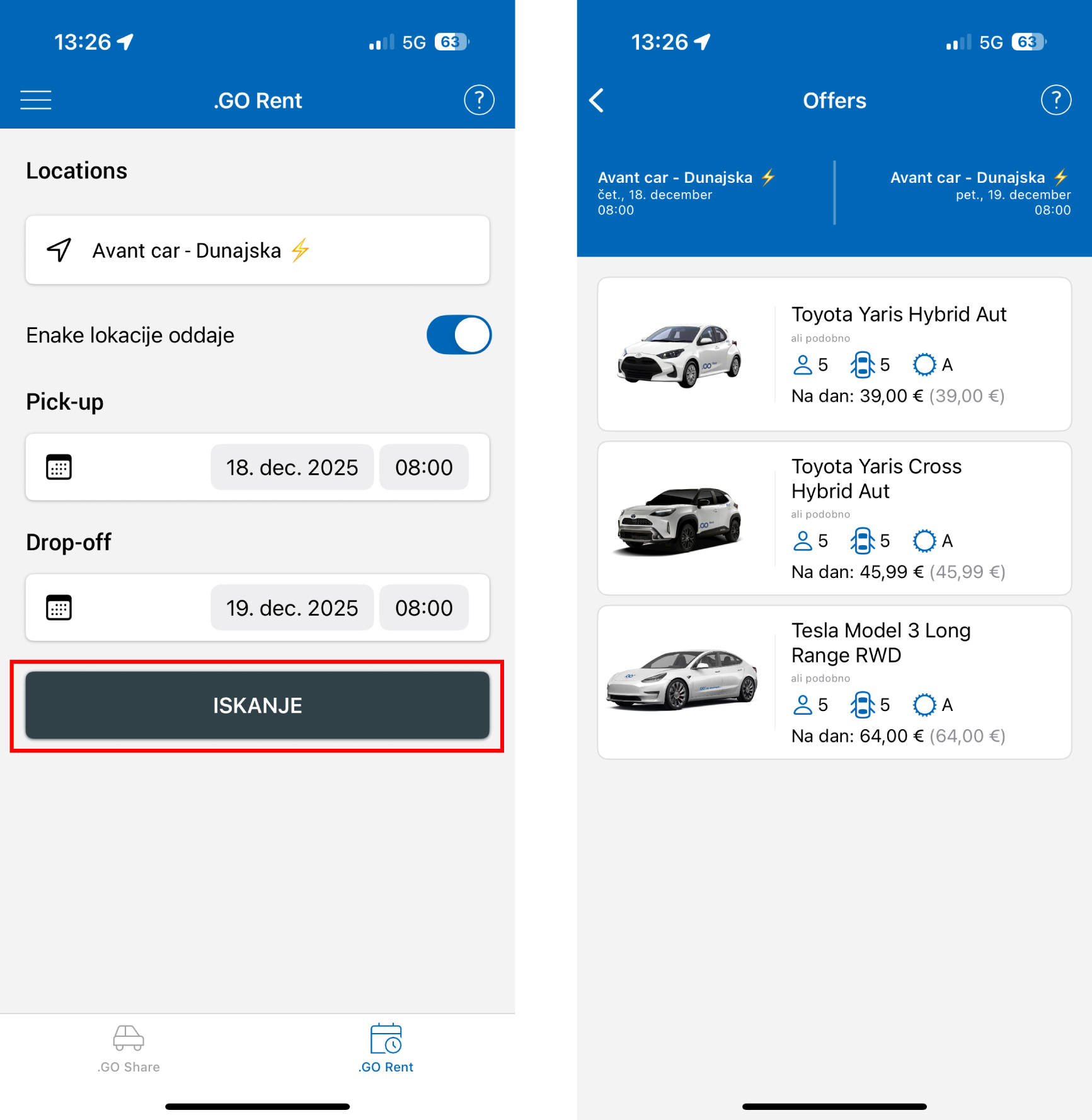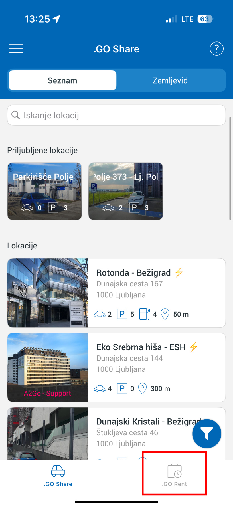 Die Übernahme und Rückgabe der Fahrzeuge ist ausschließlich an jenen Standorten möglich, die jeweils in der App im Rahmen des .GO Rent-Services angezeigt werden.