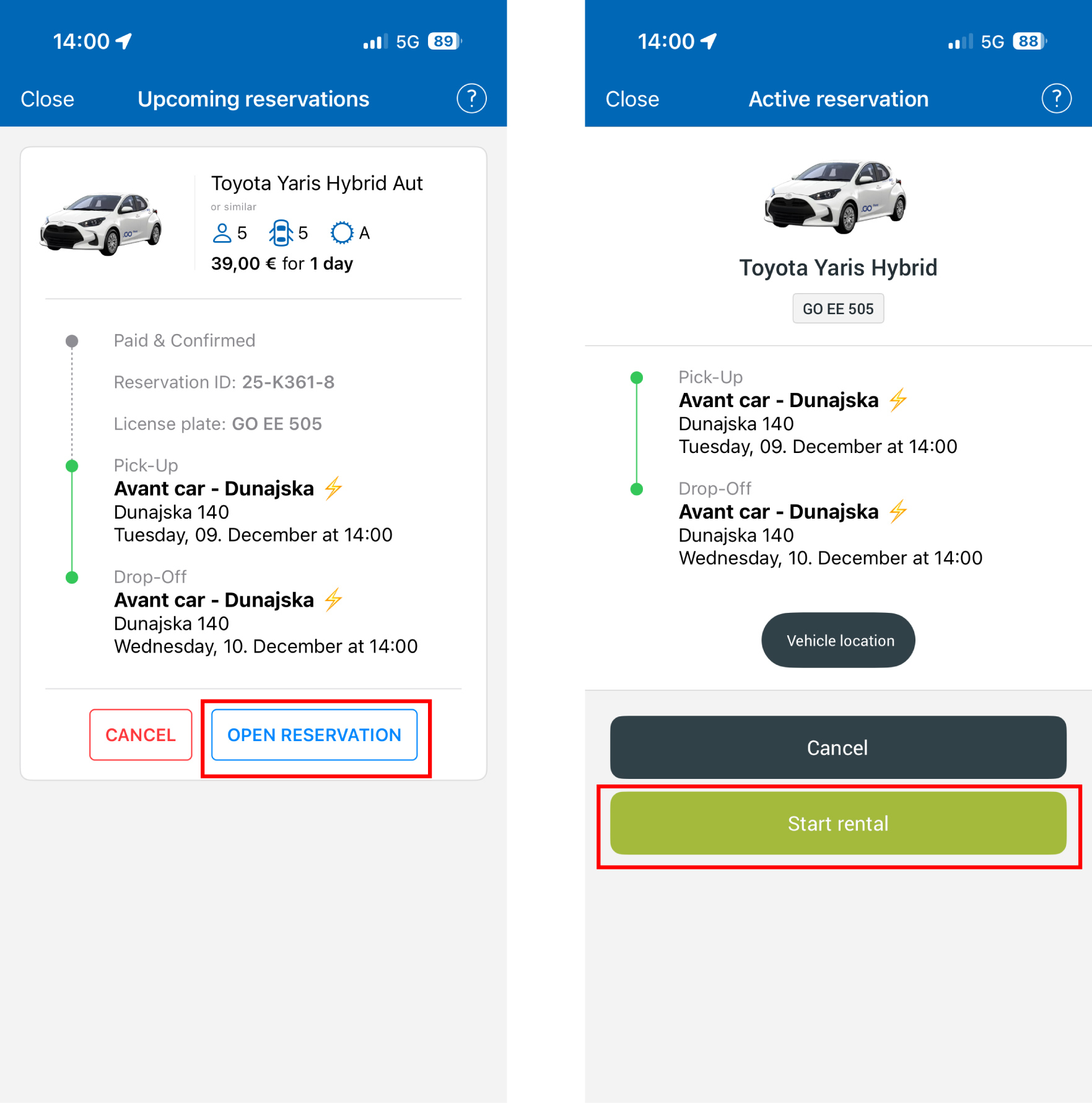 Reservierungsablauf für .GO Rent Fahrzeuge