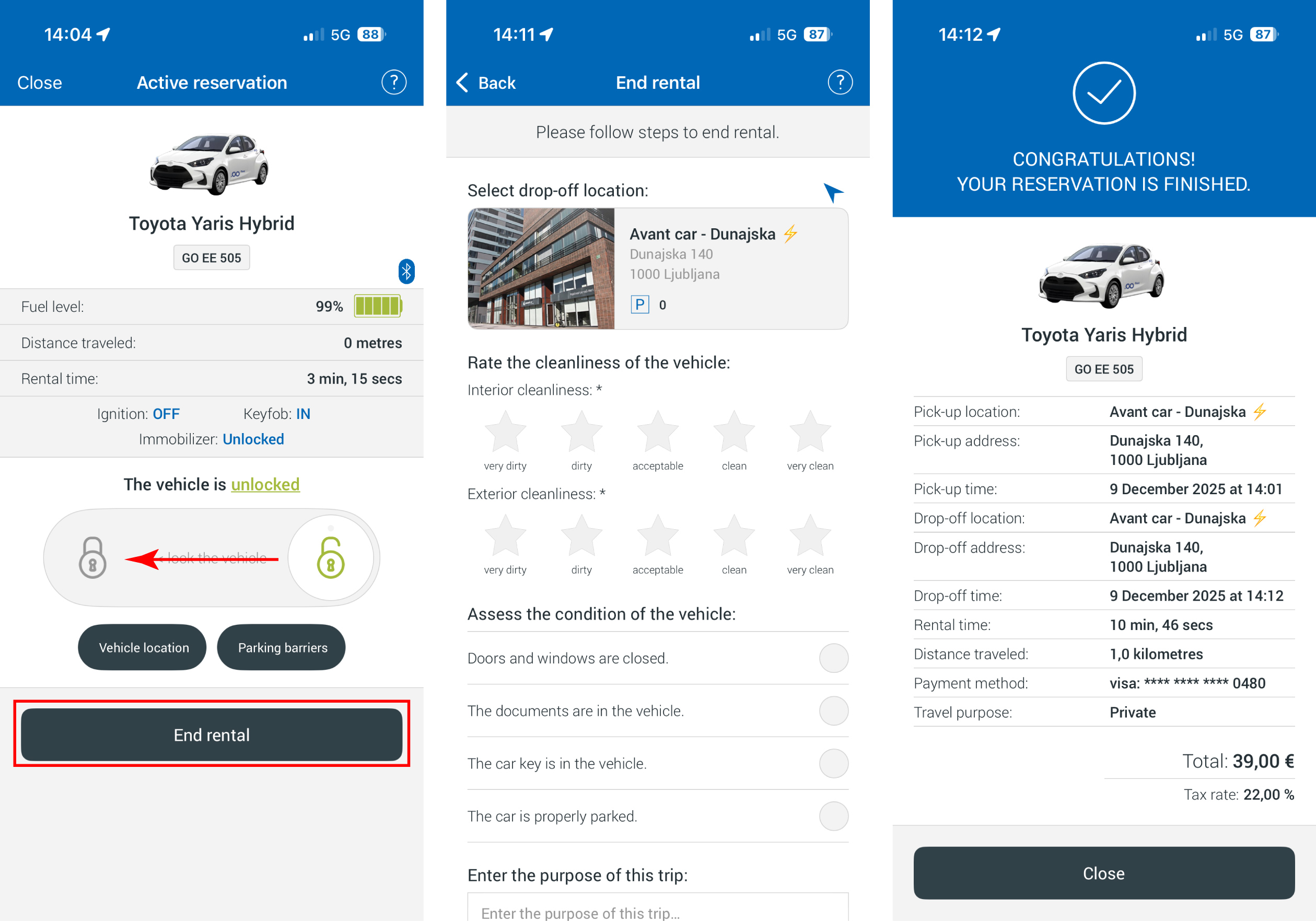 Für die Fahrzeugübernahme ist kein Besuch einer Filiale erforderlich. Das Fahrzeug steht für Sie auf den Parkplätzen der unten angeführten Avant2Go-Standorte bereit. Der gesamte Mietvorgang (Start, Öffnen, Schließen und Beendigung der Miete) erfolgt komfortabel über die App, ähnlich wie bei einem Carsharing-Service. Bitte beachten Sie, dass ein Nutzer gleichzeitig nur ein Fahrzeug aktiv mieten kann – entweder im Rahmen des Carsharings oder über .GO Rent.